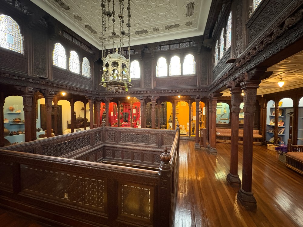 The Durbar Hall is a striking feature of Hastings Museum & Art Gallery, evoking the grandeur of 19th-century colonial display. Originally constructed in 1886 for the Indian & Colonial Exhibition in London, the hall formed the centrepiece of a replica Indian palace designed by Caspar Purdon Clarke and hand-carved in teak and deodar cedar by skilled artisans Mohammed Baksh and Mohammed Juma from the Punjab. After the exhibition the hall was acquired by the Brassey family, and in 1919 was donated to Hastings, where it was reconstructed as part of the museum in the early 1930s, restoring much of its former elegance. Today the hall spans two floors under a lantern roof; its ground floor is used for civil ceremonies, performances, talks and small gatherings (seating up to about 70–80 people), while the upper floor houses displays from world cultures, forming part of the museum’s galleries. The hall’s ornate woodwork and stained-glass windows, its arches and balcony staircases, make it one of Hastings’ most beautiful and historically resonant interiors.