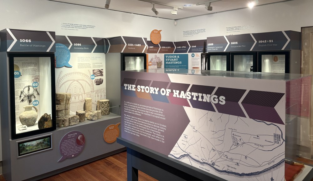The Story of Hastings in 66 Objects is a gallery that This is the museum’s attempt to tell the town’s story through emblematic objects, a curatorial approach that’s both popular and effective because objects act as narrative anchors. The gallery’s ’66 objects’ format is intentionally bite-sized, each object tells a strand of social, cultural or economic history from medieval times through Victorian tourism to wartime and the post-war seaside economy. Highlights include: maritime artefacts (ropes, ship fittings), civic regalia, fishing implements (Hastings’ fishing industry, particularly the iconic tall, netted ‘net shops’ on the Stade is essential to local identity), and ephemera from the Victorian seaside era (postcards, posters, and souvenirs). The selection includes personal letters and photographs that give texture to the big themes. Why this is important? Narrative object-based displays are terrific at showing how national stories (industrialisation, empire, wartime mobilisation) play out locally. For Hastings, a town known in tourist brochures for 1066 narratives and its seaside, the gallery shows a more complex history, fishing, trade, and cultural exchange which is valuable for residents who want a fuller account of their town’s past.