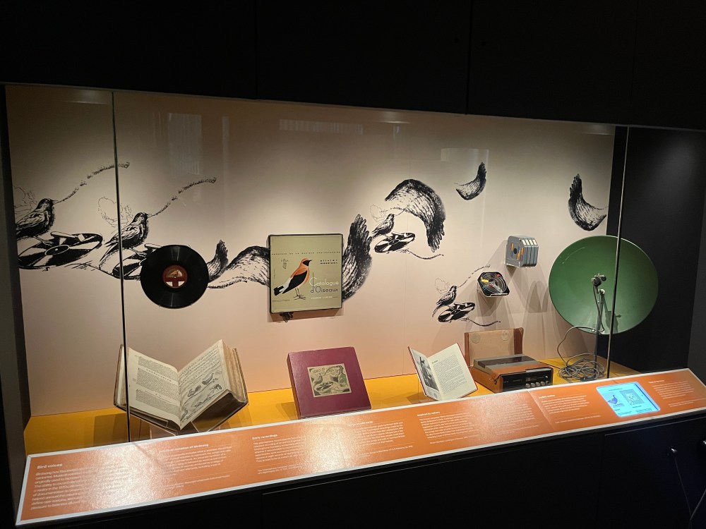 My favourite display within the entire exhibit was dedicated to the recording of bird song, and what equipment was used to do this in the early days of wildlife recording. What was more interesting, was seeing some records on display, that are part of my collection. Something that a number of you will know, is that I collect vinyl. What you may not realise, is that 1/3 of my collection is wildlife recordings including birds, frogs, whales, and everything in between. In particular, the set in the red box photographed below (a set of two 10 inch shellac discs) is something I have two copies of in my collection. I’m not entirely sure how to feel about that, they should be listened to, not locked away behind glass. I loved learning more about the artists that recorded these pieces (Ludwig Koch), and the contribution they made to our understanding of birds. I can also report that I found a few records to add to my collection at some point too, thanks to the various other displays that incorporated them.