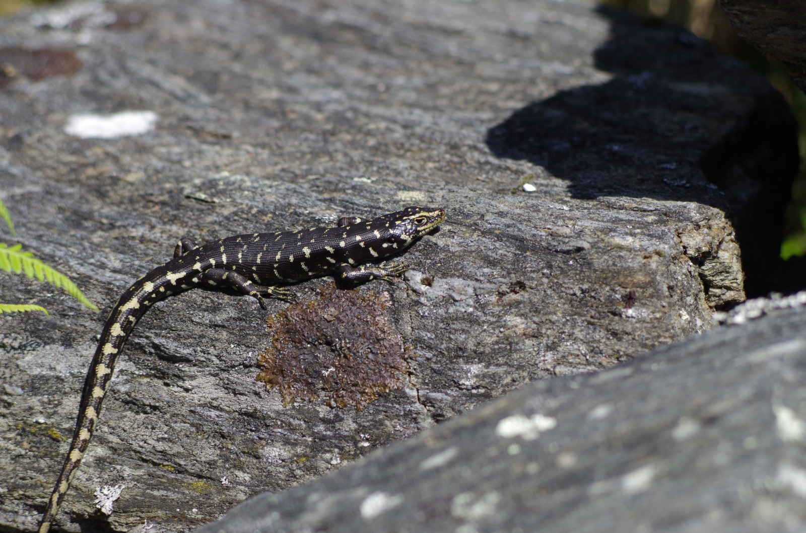 Throughout the Ecosanctuary, there were a number of boulders, logs and rock piles that any sun-worshiping reptile would have loved. Fortunately on a couple of these, we were able to find a small number of Southern grass skinks (Oligosoma aff. polychroma). These guys are a lot smaller than the Otago skinks, probably up to 15 cm in size, being about the size of the familiar viviparous lizard (Zootoca vivipara). New Zealand’s legislation regarding it’s wildlife is very strict so everything was taken at a distance using a zoom lens. I’m happy at how my photos came out though, I’ve got a number that I still need to edit and share on social media (when I find the time).